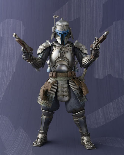Jango Fett, legendary bounty hunter and former Manda'lor. The Meisho Movie Realization figure reimagines Jango as a ronin samurai. While he still possesses a jetpack and the iconic visor, the rest of Jango has been changed to resemble a classical samurai look. The figure comes equipped with a set of flintlock pistols and a katana. More than enough to claim any bounties.