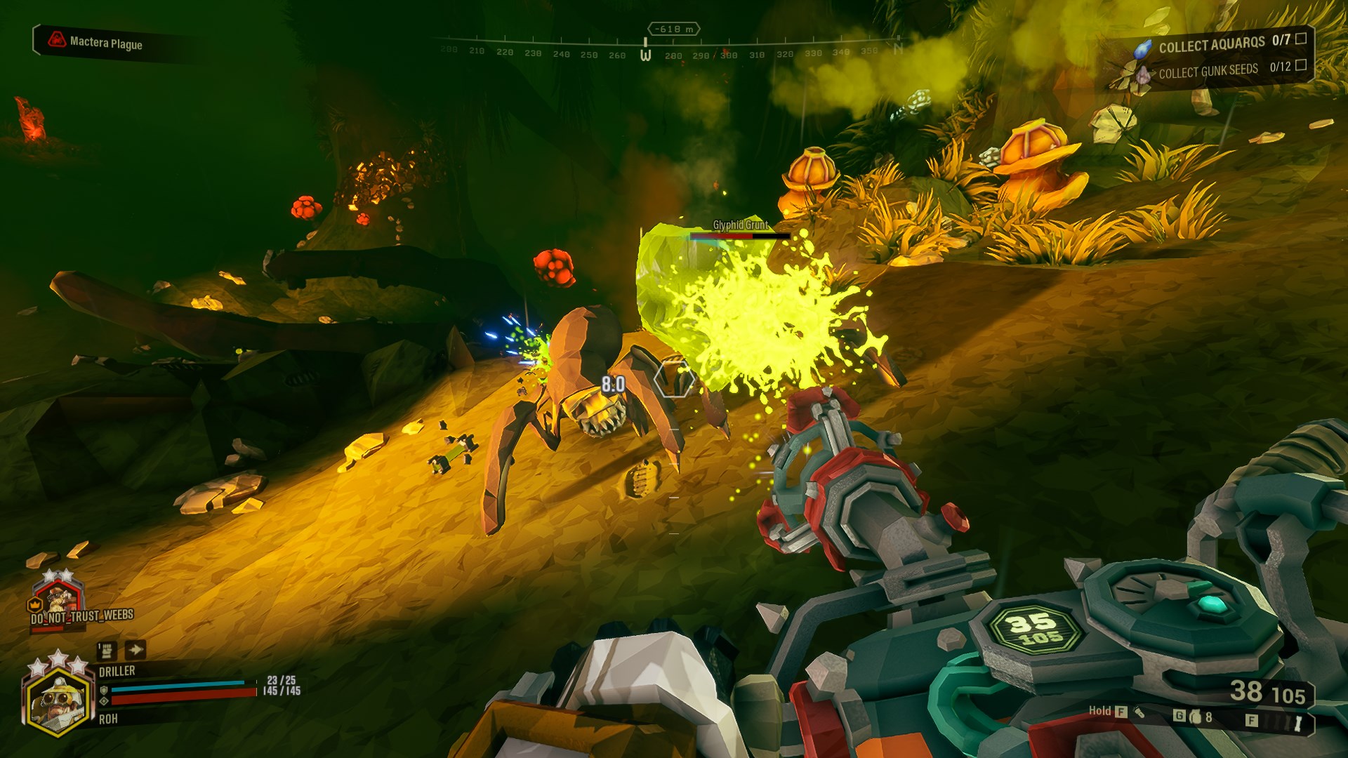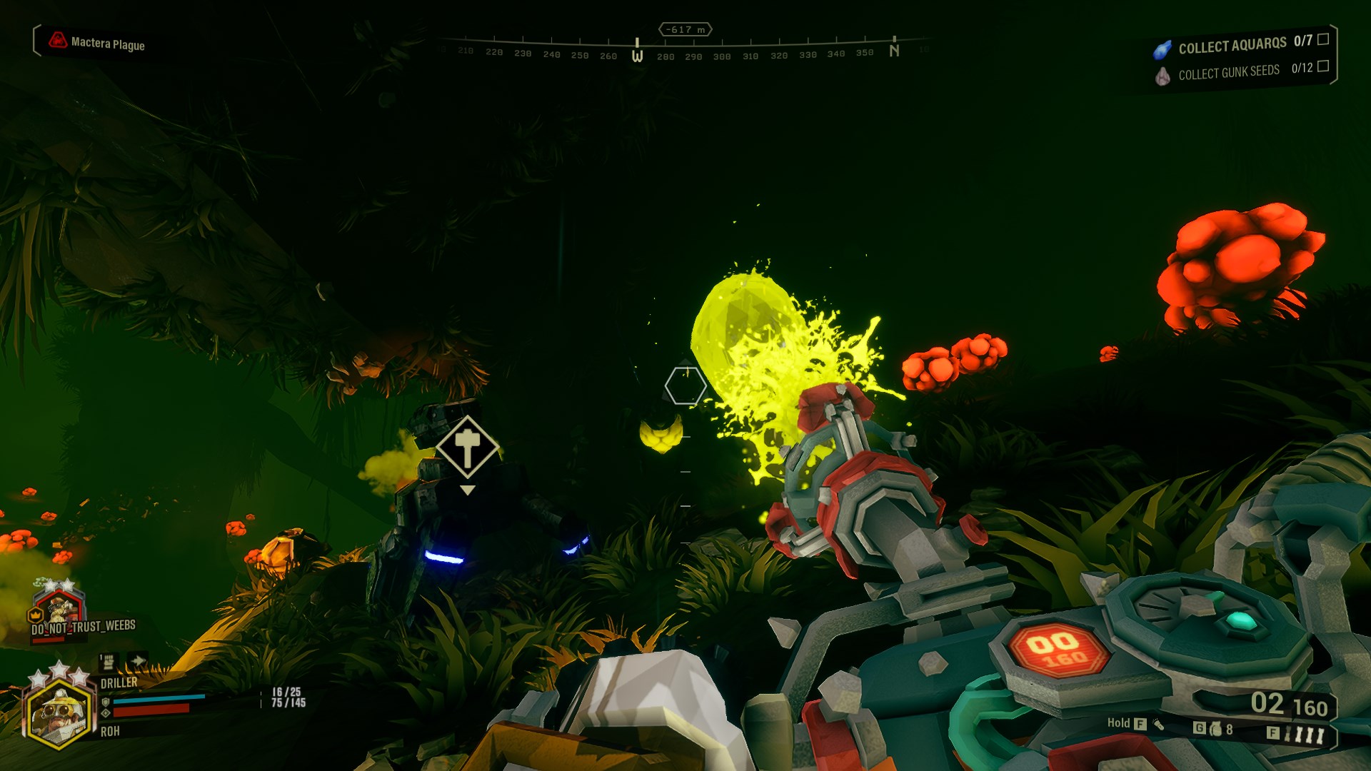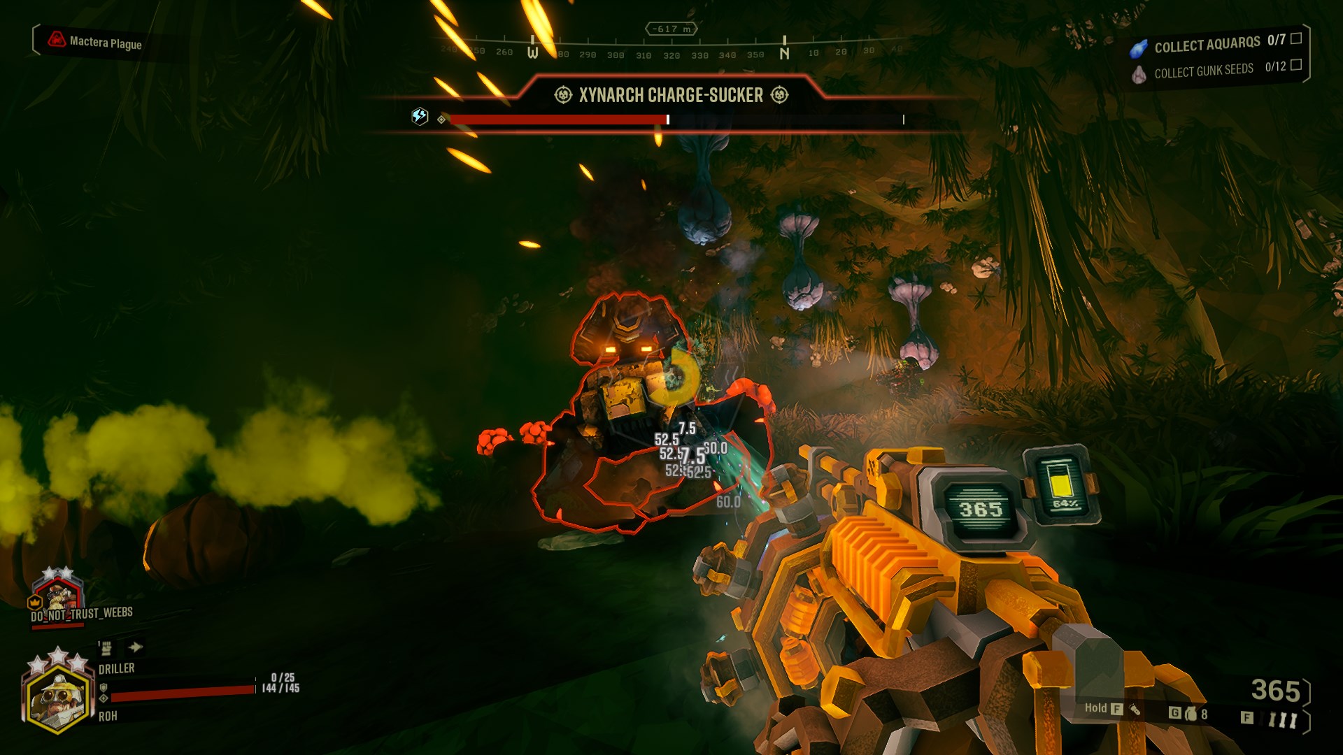 This overclock is very interesting to use, since it increases the damage of the fragments that your charge shot creates on impact. It will also increase the amount of fragments, letting you charge shot directly at an enemy, to then kill anything that is around it, making this overclock great to deal with bugs and even better to deal with bigger targets such as Oppressors and Praetorians! Disperser Compound will be one of your best friends if you want to use the Sludge Pump to deal with bigger threats.