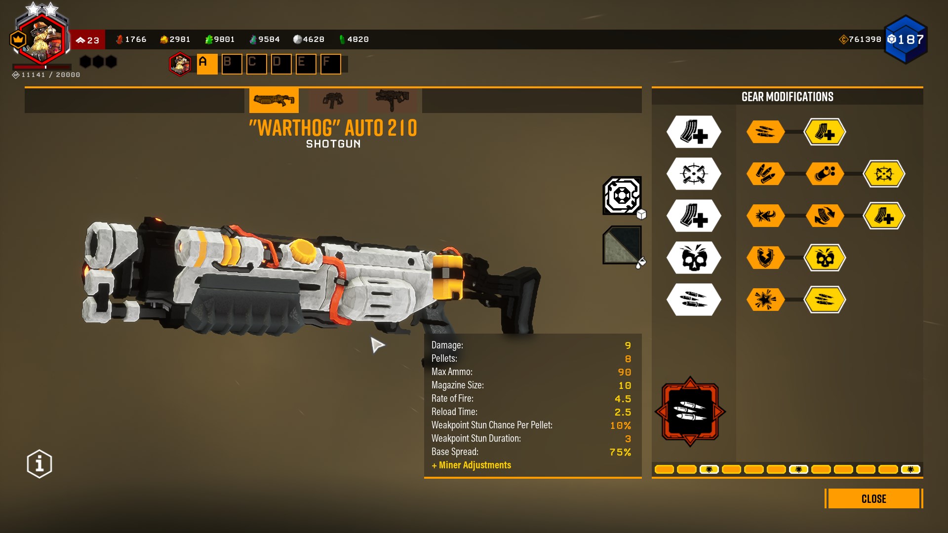 Overclock - Mini Shells: Mini Shells adds more ammo, magazine size and reduces recoil of the Warthog, while decreasing damage, stun chance and duration.